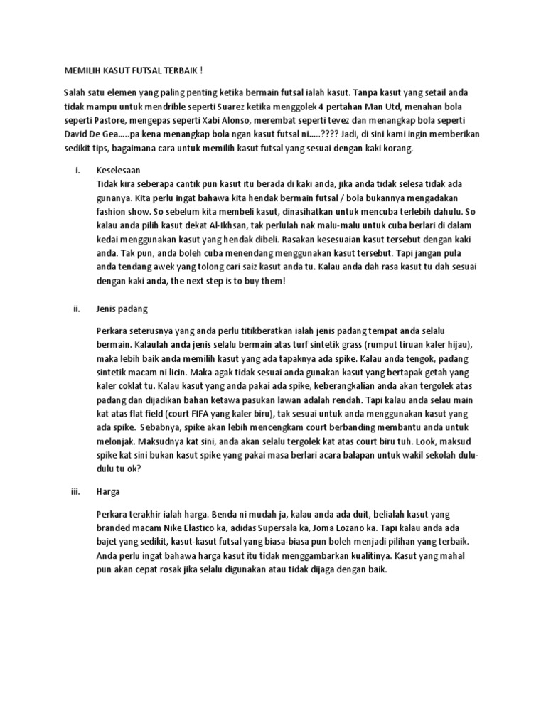 1 from Kasut futsal ini merupakan produk original keluaran dari negara thailand. Blog ini dibuat sebagai review kasut bola dan futsal terbaik. Saya berminat nak borong kasut kool, pan dan breaker. Saya sendiri telah mencuba beberapa jenis kasut yang. Berikut sepatu futsal berkualitas dengan model kece dan harga ramah kantong, ini dia tujuh rekomendasinya. Simak dan temukan sepatu futsal terbaik dari ulasan berikut ini. Futsal adalah sejenis bola sepak klasik, satu lagi jenis bola sepak klasik adalah bola sepak pantai. Ketahui cara memilih dan rekomendasi sepatu futsal terbaik yang bagus dan terbukti awet ini.