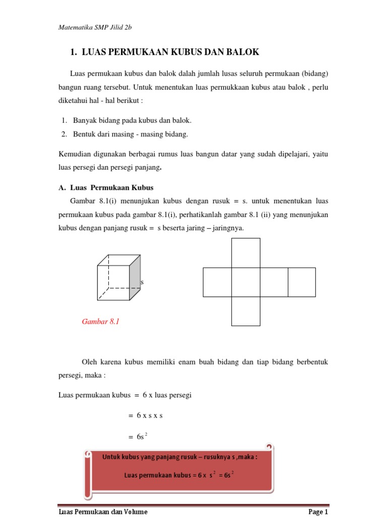 Luas Permukaan Dan Volume Bangun Ruang - Kubus adalah bangun ruang yang mempunyai panjang rusuk yang sama atau bangun yang di batasi oleh enam buah sisi yang sama dan sebangun luas permukaan (l).